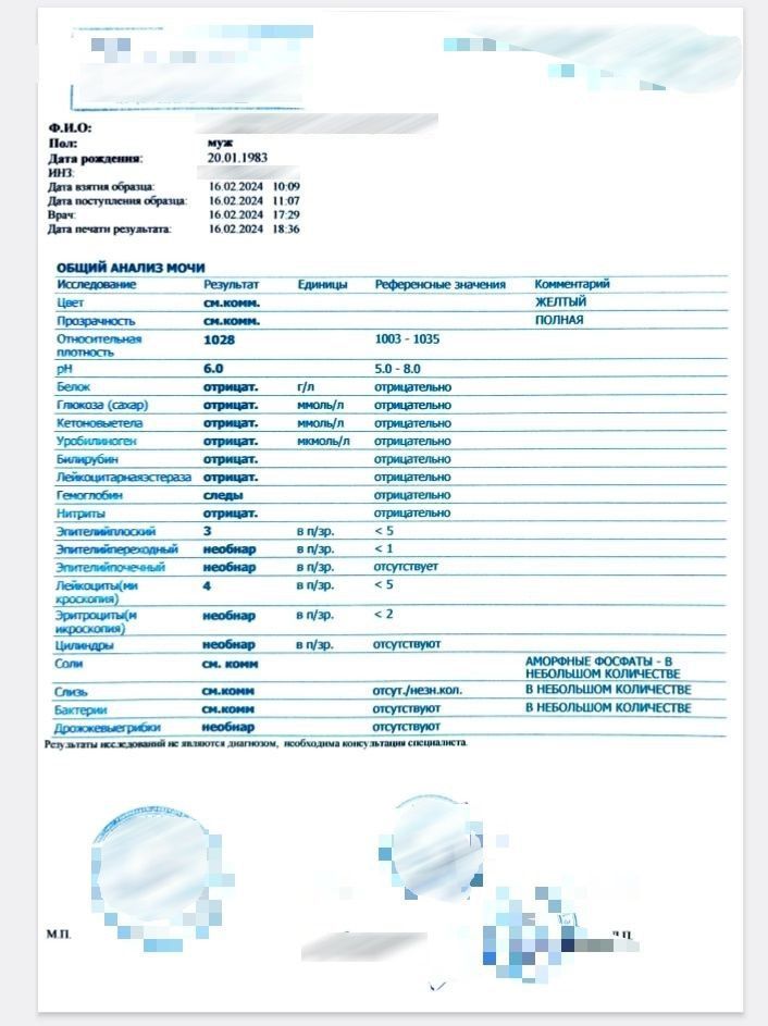 Наша клиника предлагает удобный и простой способ оформления покупки Общего анализа мочи (форма 210/у). Вам достаточно предоставить необходимые данные на WhatsApp, и мы сразу приступим к обработке вашего заказа. Мы ценим ваше время и стремимся сделать процесс приобретения максимально удобным и быстрым.
