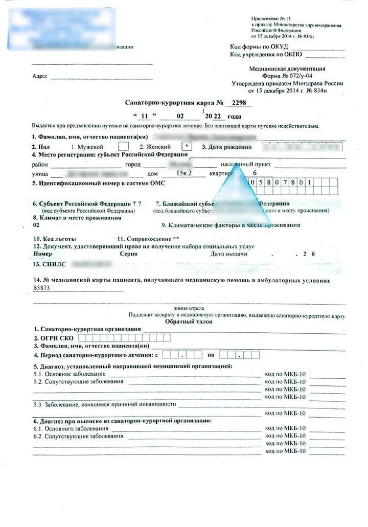 Купить санаторно-курортную карту (форма 072 у-04) в Москве.